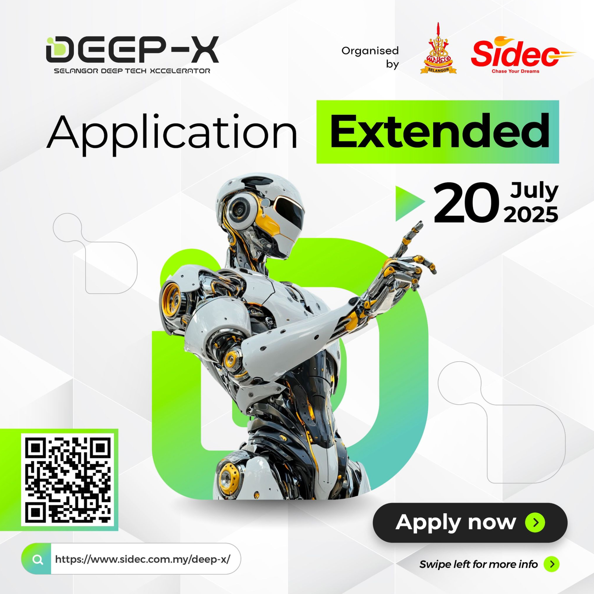 We defined “Chase Your Dreams” as Sidec’s core brand idea to inspire ambition and innovation. The identity drew from Selangor’s red and yellow to anchor state pride, while a structured brand architecture was built to support the full digital journey from startups and SMEs to enterprise, deep tech, and ecosystem leaders.